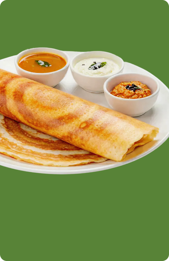 A regional favorite featuring a spicy red chutney spread on the inside of the dosa before adding the potato masala filling.